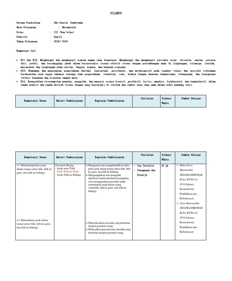 Nah bagi bapak/ibu guru yang mengajar pada tingkat satuan pendidikan smp/mts biasanya anda selalu saja disibukkan dengan membuat … Setelah hasil revisi kurikulum 2013 selesai tentunya pasti ada perubahan yang terjadi dan perubahan tersebut akan kami bagikan contoh penyusunan silabus dan rpp sma. 07.10.2020 · silabus matematika kelas 4 sd mi kurikulum 2013 revisi 2018 websiteedukasi cute766 2 pemetaan sk kd matematika pemetaan kompetensi dasar k 13 kelas 1 semester 1 sekolahdasar net ki dan kd matematika kelas 4 5 6 kurikulum 2013 gudangalamai ki kd matematika kelas 9 smp mts k13 revisi 2018 websiteedukasi com pemetaan kd kelas 4 semester 1 kurikulum 2013 revisi … Silabus smk komplit kurikulum 2013. Download rpp 1 lembar smk kurikulum 2013 revisi 2017/2018/2019/2020/2021 kelas x xi xii semester 1 2 ganjil genap daring lengkap promes prota silabus
